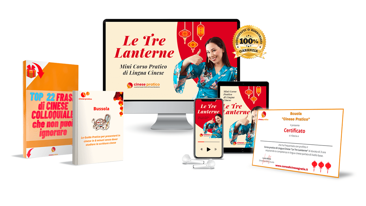 Entra nel mini corso “Le Tre Lanterne”, guardati il corso e inizia ad immergerti nella lingua cinese… hai 14 giorni di tempo per testare l’efficacia del mini corso ed il mio metodo di insegnamento, se per qualsiasi motivo non sei soddisfatto e non riesci a dialogare con un madrelingua cinese dopo aver visto il corso basta che ci scrivi una email e ti rimborseremo all’istante dell’intero importo.